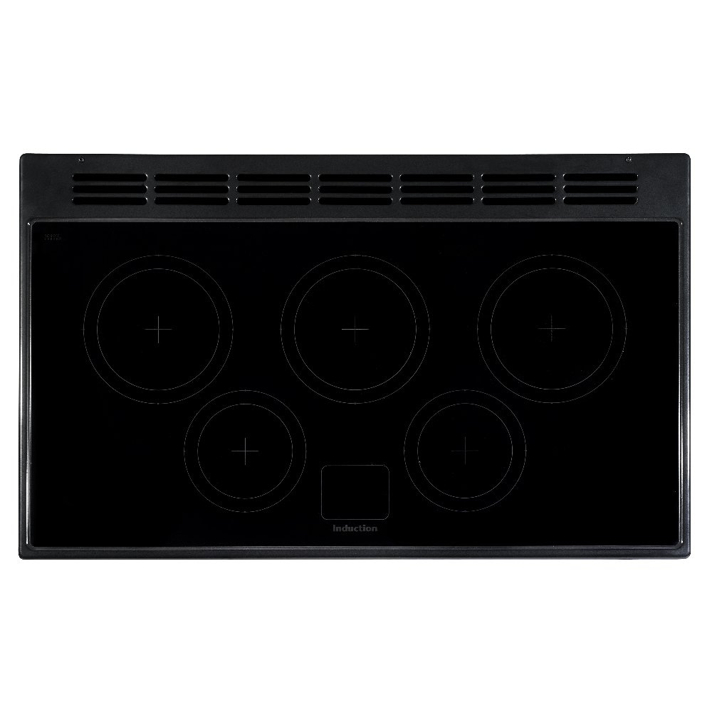 This attractive 100cm wide range style cooker from Rangemaster features electric ovens and a five zone induction hob. Finished in black with chrome trim it will create a stunning focal point in your kitchen.