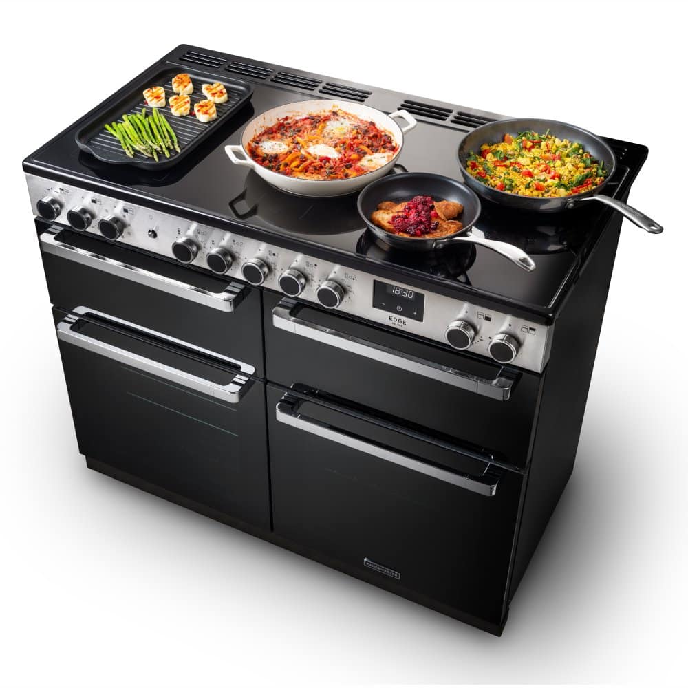 Rangemaster EDDLB110EIGBLK/CM1 Edge Deluxe BC 110cm Induction Range Cooker With Chrome Trim 15834 – BLACK