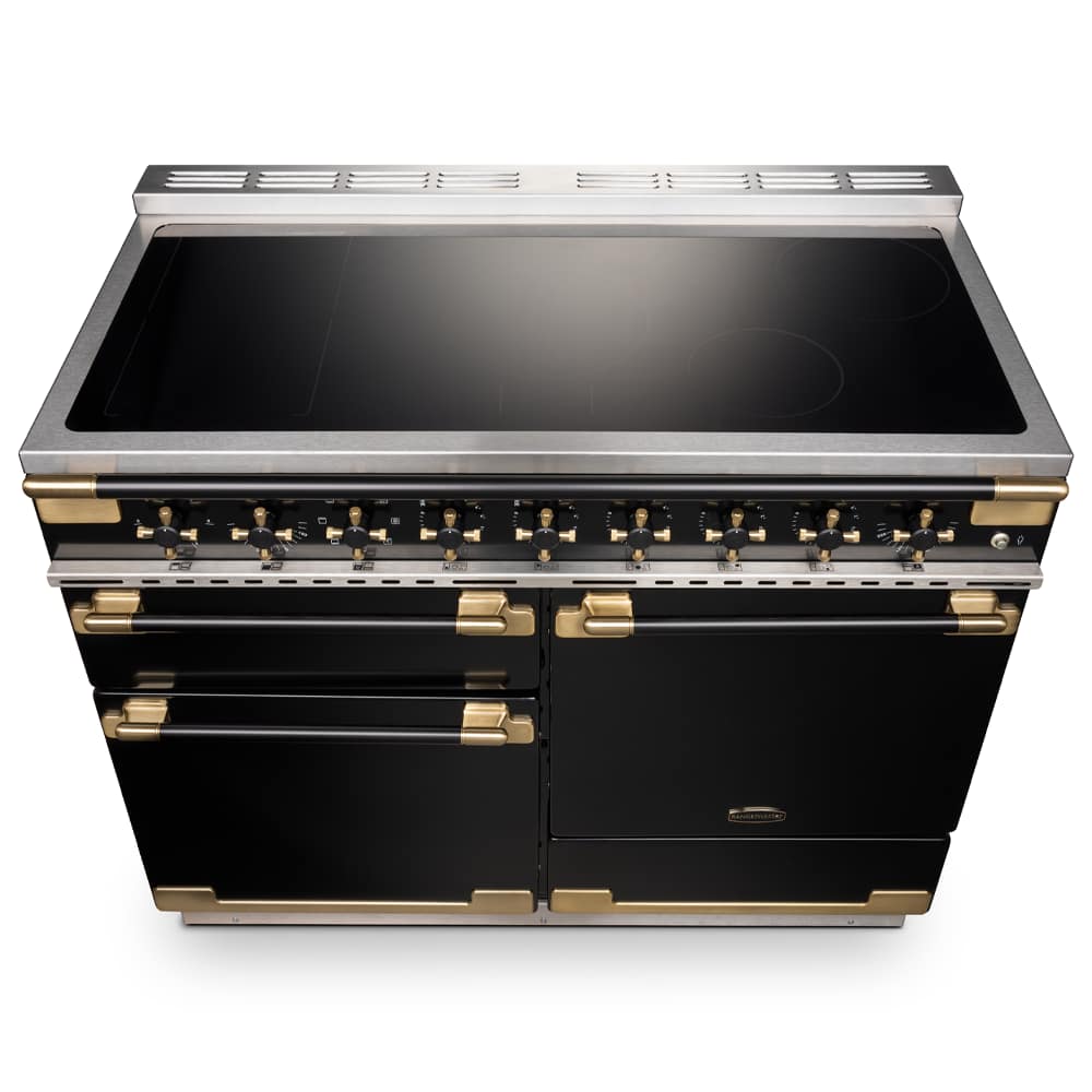 Rangemaster ELS110EIGB/BE Elise Luxe 110cm Black Edition Induction Range Cooker With Antique Brass Trim – BLACK