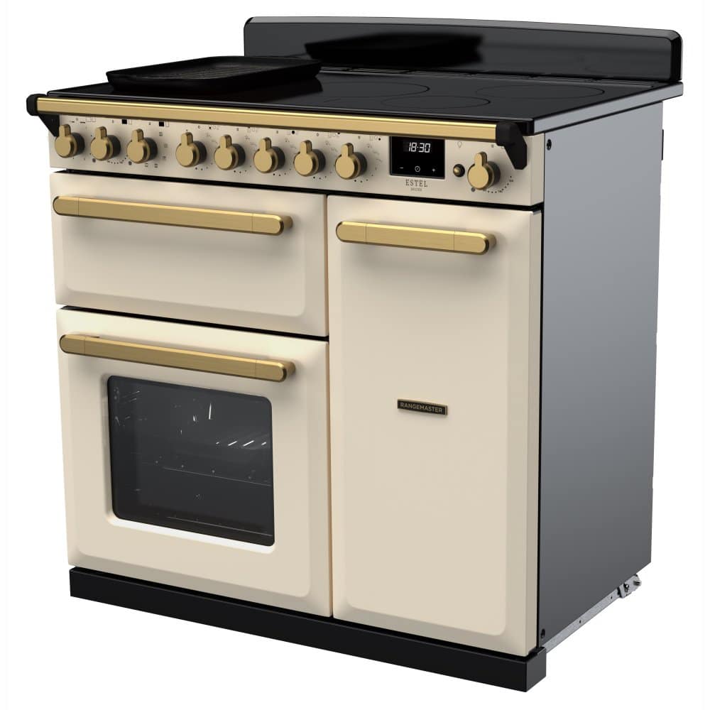 Rangemaster ESDL90EIPPCR/AB1 Estel Deluxe 90cm Induction Range Cooker With Antique Brass Trim 18055 – PALE CREAM