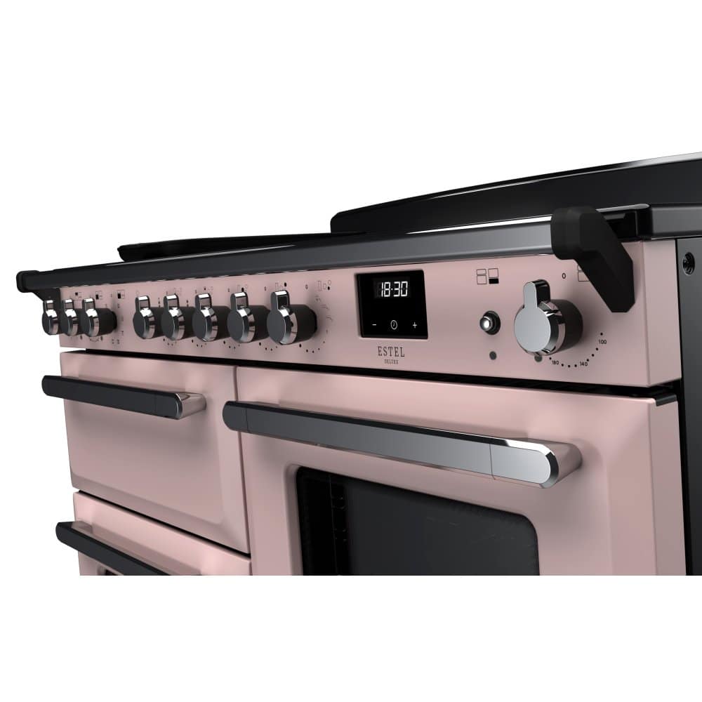 Rangemaster ESDLO110EIPPPK/CM1 Estel Deluxe OC 110cm Induction Range Cooker With Chrome Trim 15203 – PALE PINK