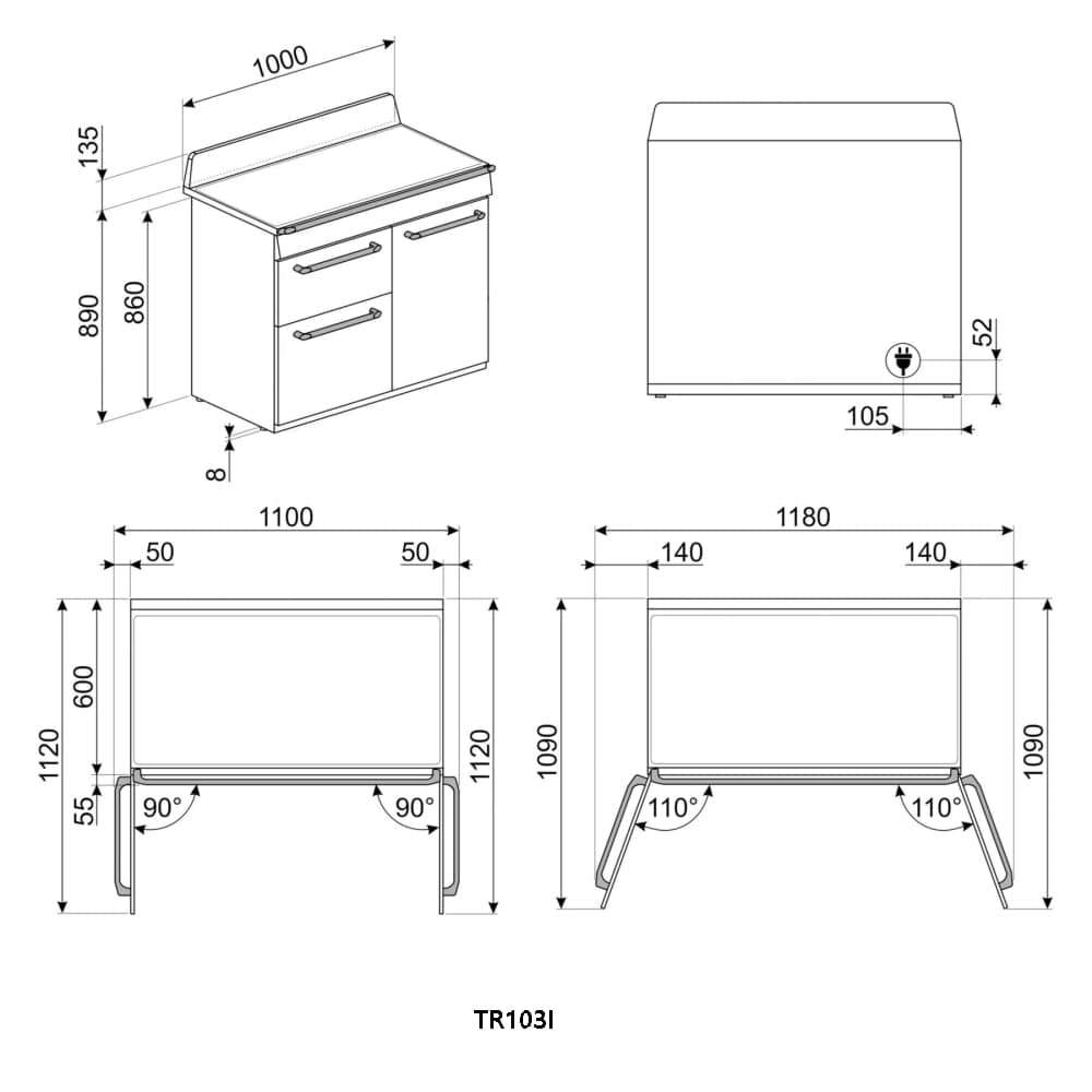 Dimensions: h895-910 x w1000 x d600mm (excluding handles and upstand)