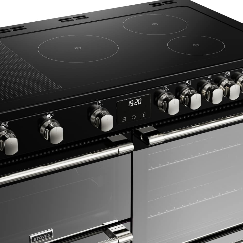 Get ready to impress your friends with this outstanding 110cm wide induction range cooker from Stoves. Full of features, it has an impressive five zone induction hob top with rotary controls and a bridge zone. Superbly designed with modern clean lines incorporating extras like bluetooth connectivity, a dedicated slow cooker and huge capacity ovens, you will wonder how you managed without it! The doors feature mirrored glass panels.