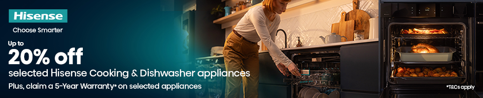 About this promotion: Claim up to 20% off selected Hisense Cooking & Dishwashing appliances by adding code HISENSE20 or HISENSE10 to your basket before purchase.