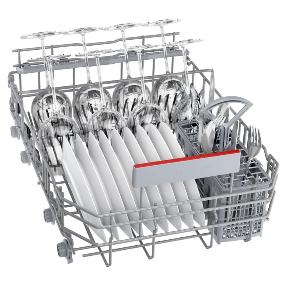 This Bosch 45cm wide dishwasher uses Dosage Assist which ensures that all the detergent or tablet is thoroughly mixed with the water. When you need to save time you can always select the Vario Speed option which reduces the running time of the programme. With a 9 place settings capacity, it is perfect for smaller households.