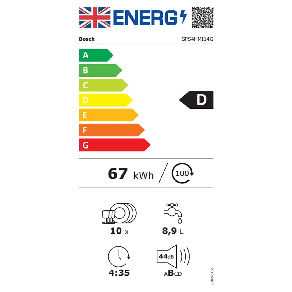 Not all small kitchens should have to rely on hand washing to get dishes clean. With this 45cm freestanding dishwasher, Bosch does all the hard work for you! With capacity to store up to 10 place settings and 2 adjustable VarioFlex baskets, the SPS4HMI14G is the perfect dishwashing solution for smaller households. Better yet, a VarioDrawer cutlery tray on the 3rd level gives you more usable space in the rest of the dishwasher for pots, pans and crockery. With 6 programmes and 3 options to choose from, this dishwasher is speedy and efficient. Combine your preferred cycle with the SpeedPerfect+ option and wash and dry a full load in half the time without compromising on performance! When you activate the Extra Dry option, the SPS4HMI14G uses higher temperatures during rinsing and has a longer drying phase. This way your dishes are ready to be put away the moment the cycle ends. This dishwasher is exceptionally quiet in use so you can wash without distractions. With so many more innovative features on offer, we know you are going to love this Bosch freestanding dishwasher just as much as we do!