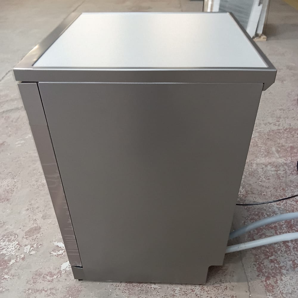 This superb freestanding dishwasher from Hisense offers a total of 7 programmes and space for 16 place settings. It is finished in stainless steel effect silver and has a noise level of 42 decibels. This unit is designed to fit under your worktop and will require a cold water feed and a waste outlet.
