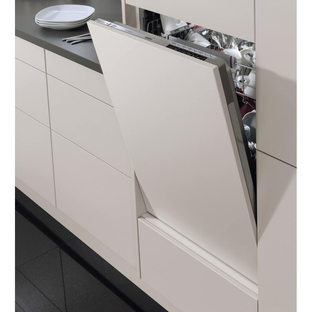This fantastic built in dishwasher from AEG offers handy, flexible space for 14 place settings, and with a range of 7 programmes to choose from, whether it’s baked on food or delicate glasses, you know that you will get great results. Designed to be fitted seamlessly into your kitchen with a furniture door attached, your kitchen will be sleek and streamlined.