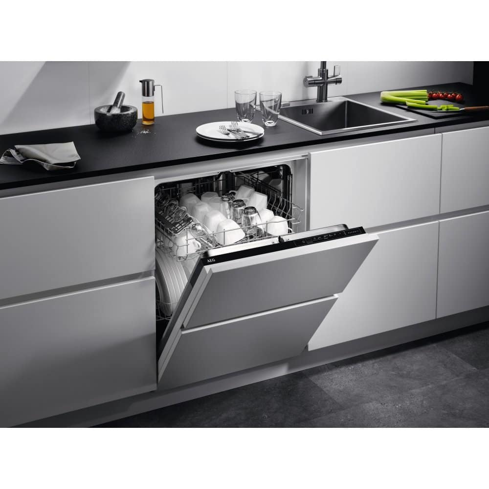 This fantastic built in dishwasher from AEG offers space for 13 place settings. Designed to be fitted seamlessly into your kitchen with a furniture door attached, your kitchen will be sleek and streamlined.
