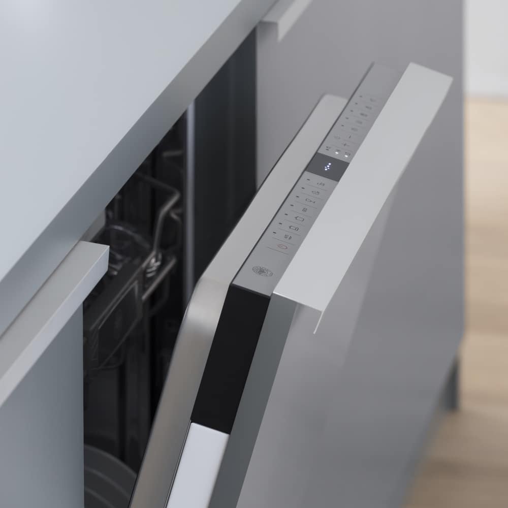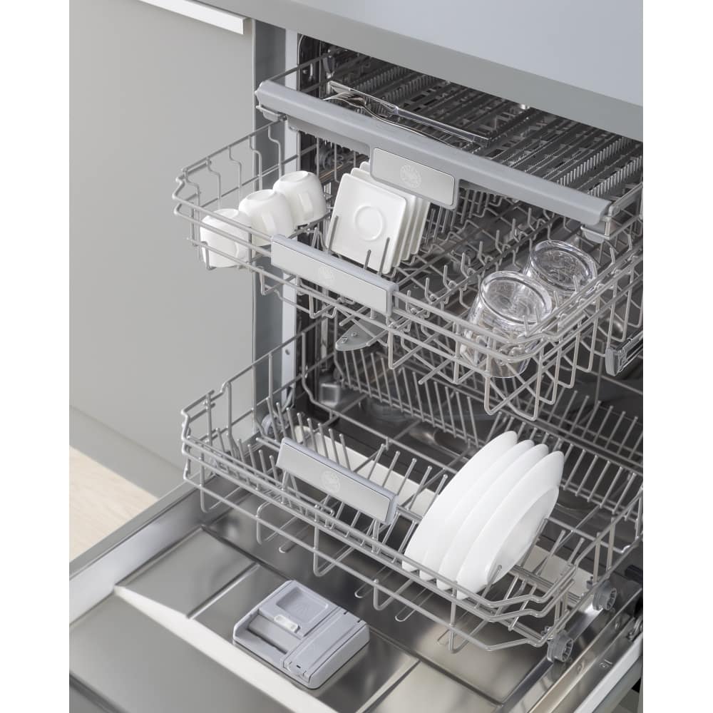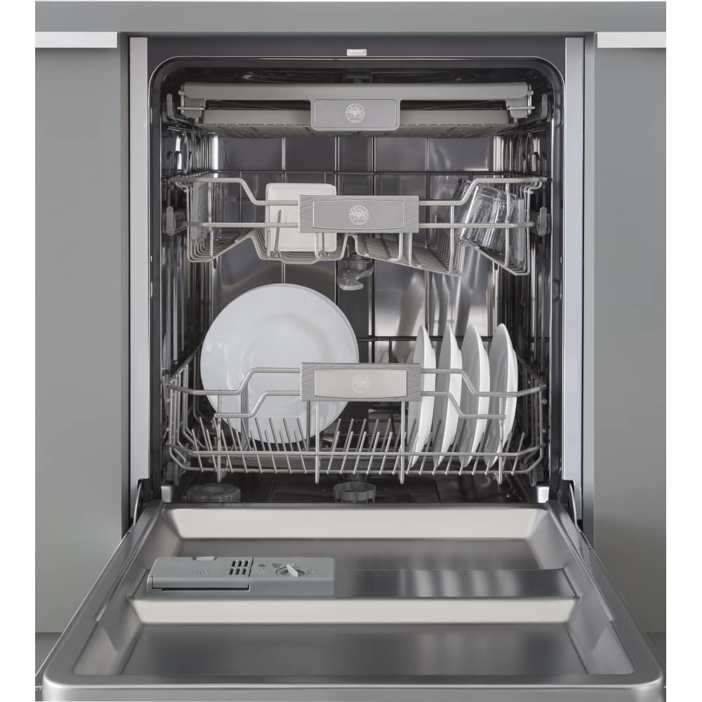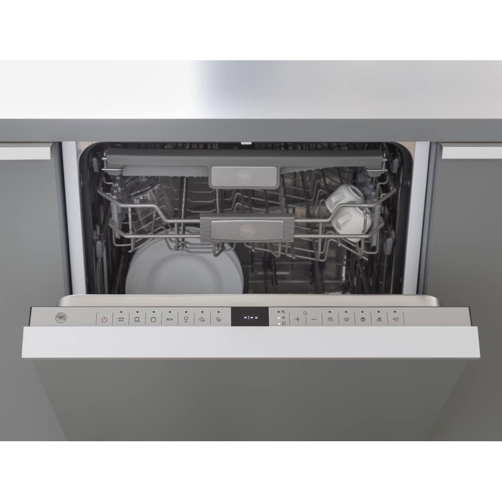 This Bertazzoni 60cm fully integrated dishwasher is large enough for up to 14 place settings on three racks. A turbo drying system ensures quick drying at the end of the programme. It’s insulated to keep noise levels at a low 42dB. Automatic door opening at the end of the washing cycle speeds up the drying process.