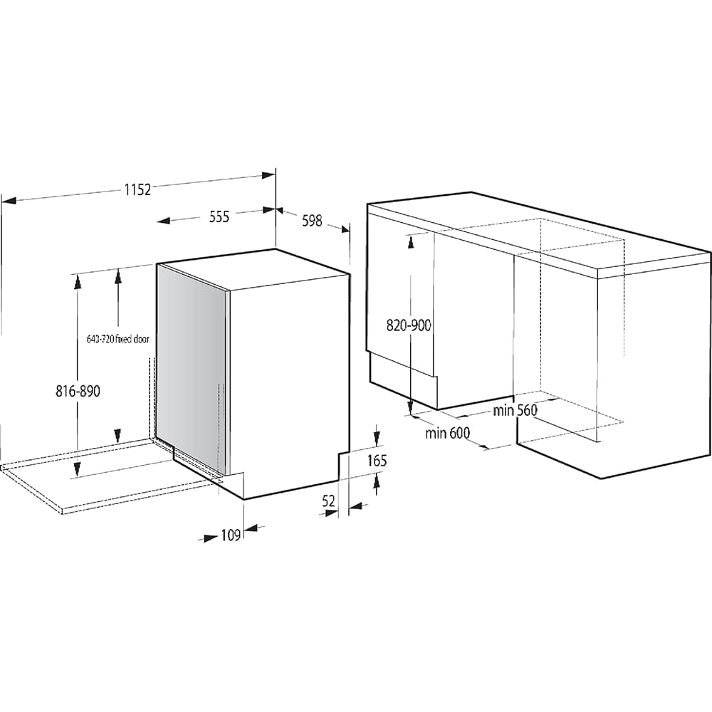 Dimensions: h816 x w598 x d555mm