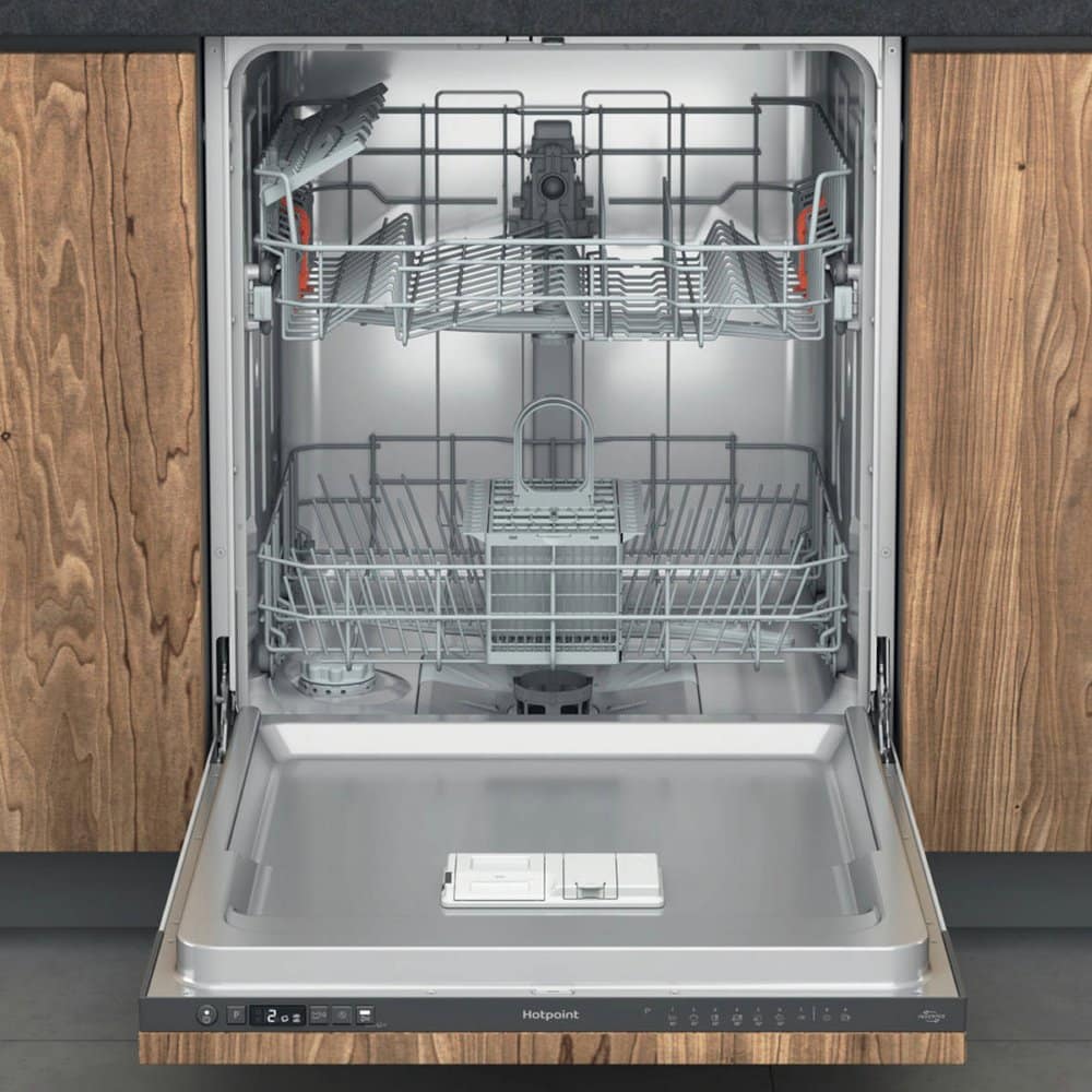 Make cleaning dishes a thing of the past with this fantastic fully integrated dishwasher from Hotpoint! It has enough space for 14 place settings and 9 programmes.