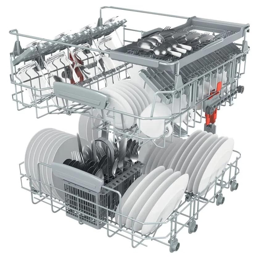 Make cleaning dishes a thing of the past with this fantastic fully integrated dishwasher from Hotpoint! It has enough space for 14 place settings, with 7 programmes and a height adjustable upper basket. This model features ActiveDry, which naturally dries the dishes by automatically opening the door after the end of the cycle. With a digital display and electronic controls, this Hotpoint dishwasher is perfect for making life in the kitchen simpler and cleaner. This unit is designed to be completely hidden behind a furniture door and will require a cold water feed and waste outlet.