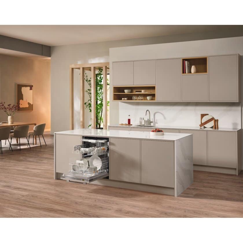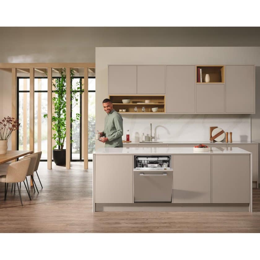 Miele’s expertise in long-lasting appliances is shown off with this superb fully integrated dishwasher. It’s capable of holding up to 14 place settings and has 5 wash programmes that are designed for getting your dishes hygienically clean. It has Comfort Baskets, a height adjustable upper basket and a 3D MultiFlex cutlery tray that’s perfect for espresso cups. Designed to fit seamlessly behind a furniture door, this Miele dishwasher is sure to be a welcome addition to any modern kitchen.