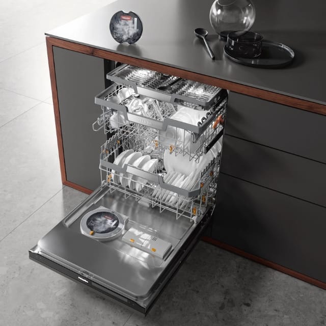 Miele’s expertise in long-lasting and durable appliances is shown off in this superb fully integrated dishwasher! This model is energy efficient and rigorously tested for the equivalent for 20 years use, so you know you’ll be getting a reliable and efficient machine. It has a capacity of 14 place settings, with 13 fantastic programmes and the option to delay the wash for up to 24 hours. With flexible interior trays and automatic detergent dosing, this Miele dishwasher is perfect for hygienically clean and carefree dishwashing.