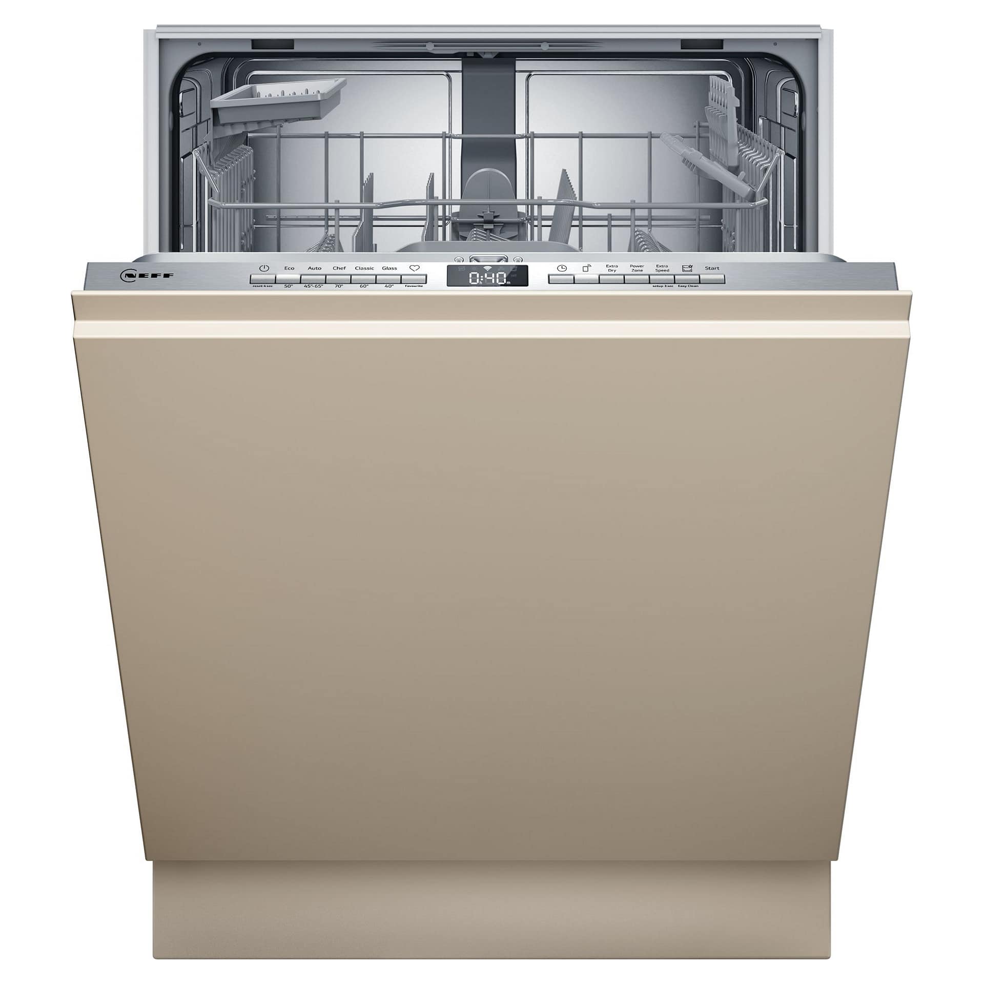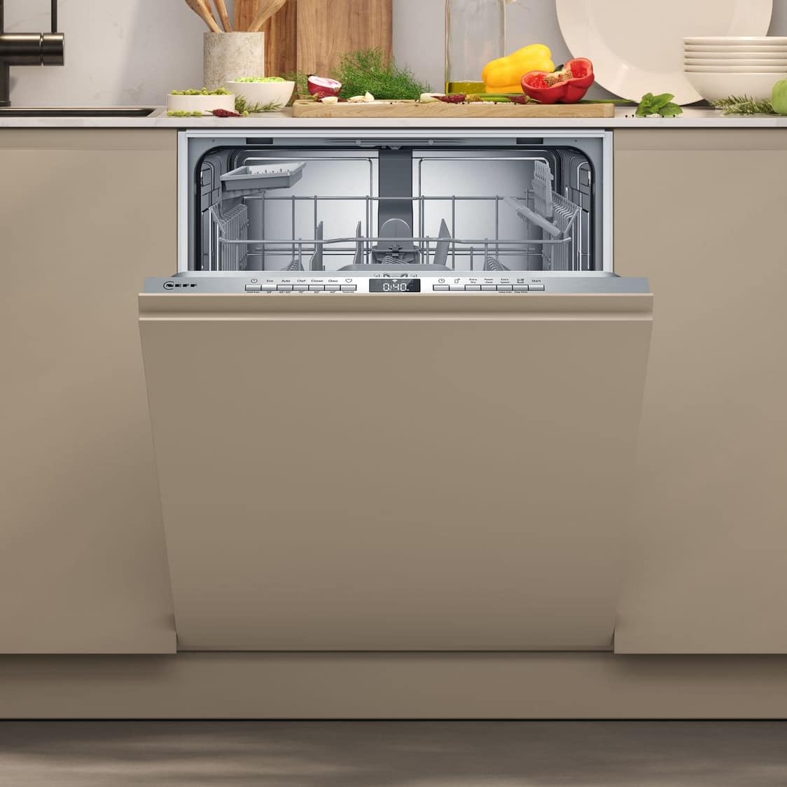 This Neff integrated dishwasher features 13 place settings and 6 wash programmes. With options such as extra speed, you can get brilliant results with reduced run times.