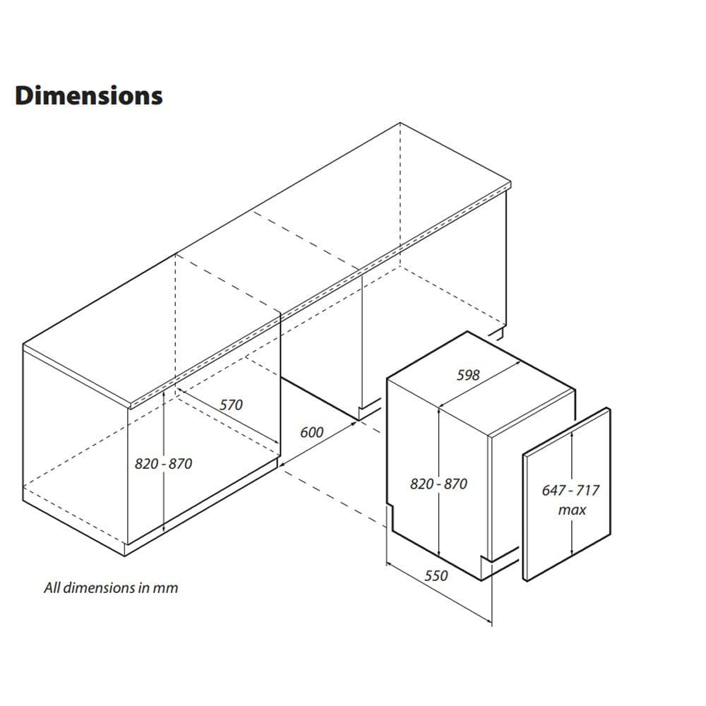 Experience excellent performance and energy efficiency with Rangemaster! This superb integrated dishwasher offers large households space for 12 place settings and 9 wash programmes including intensive and delicate cycles – great for Sunday dinner pots or wine glasses. Not ready to wash just yet? No problem, you can pop the dishwasher on hold thanks to the delay timer and with the low decibel rating, putting it on through the night won’t disturb you. This unit is designed to be completely hidden behind a furniture door and will require a cold water feed and a waste outlet.