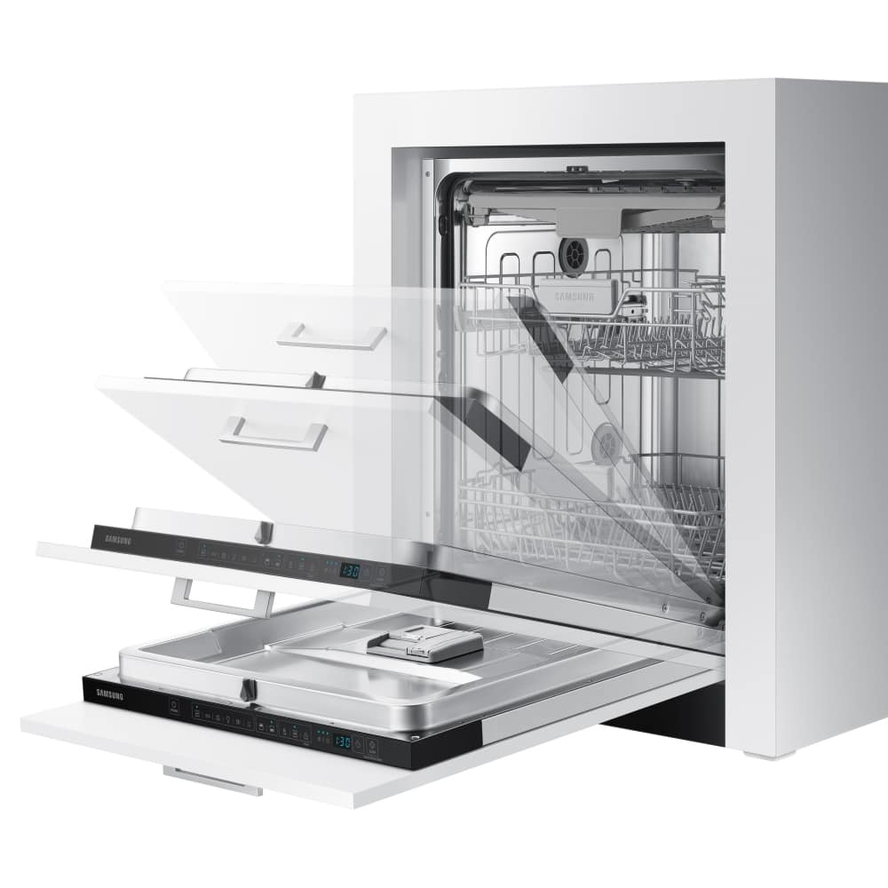 This superb integrated dishwasher from Samsung offers room for 14 place settings and 5 wash programmes. With a handy half load option, you can keep the running costs low when you don’t need to fill the whole interior. This unit is designed to be completely hidden behind a furniture door and will require a cold water feed and a waste outlet.