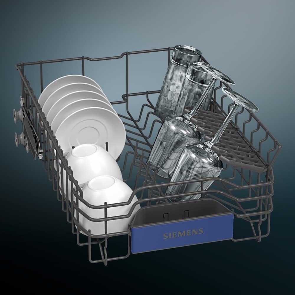 Slim in size but packed full of features and great build quality, this 45cm fully integrated dishwasher from Siemens really ticks all the boxes. Offering space for up to 10 place settings and with 6 wash programmes to choose from, this dishwasher would suit a smaller household to a T. You’ll save yourself bags of time, energy and money with handy settings such as the economy programme and the delay timer plus, thanks to the Vario Flex basket system you’ll have all the flexibility you’ll ever need. This dishwasher is designed to blend in with your kitchen keeping a sleek and streamlined look.