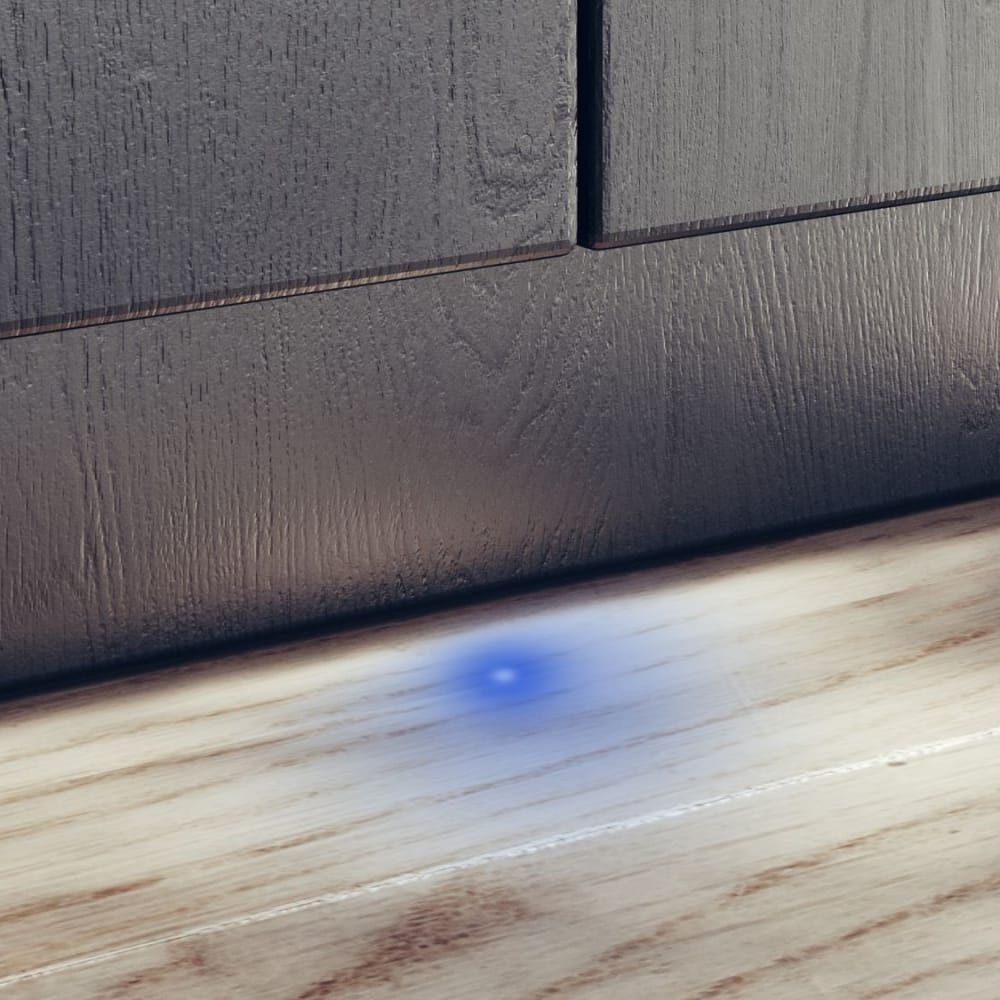 VarioHinge model suitable for lower plinth heights, allows the kitchen panel to slide up the appliance door as it’s opened, so it clears the plinth.