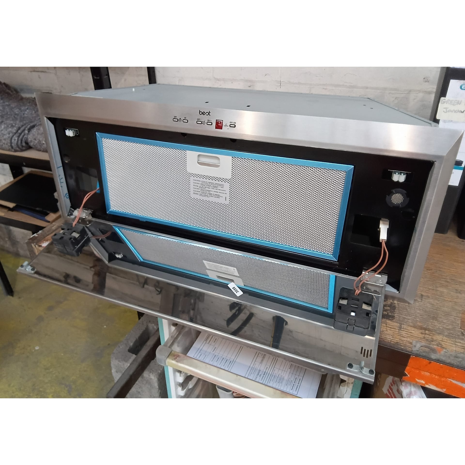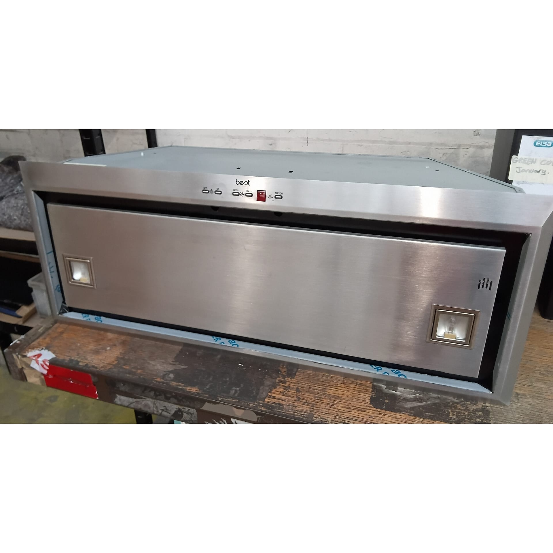This ex display HOOD-BE-VS-70-SS canopy hood from Best is 70cm wide and has a maximum extraction rate of 630m³/hour.