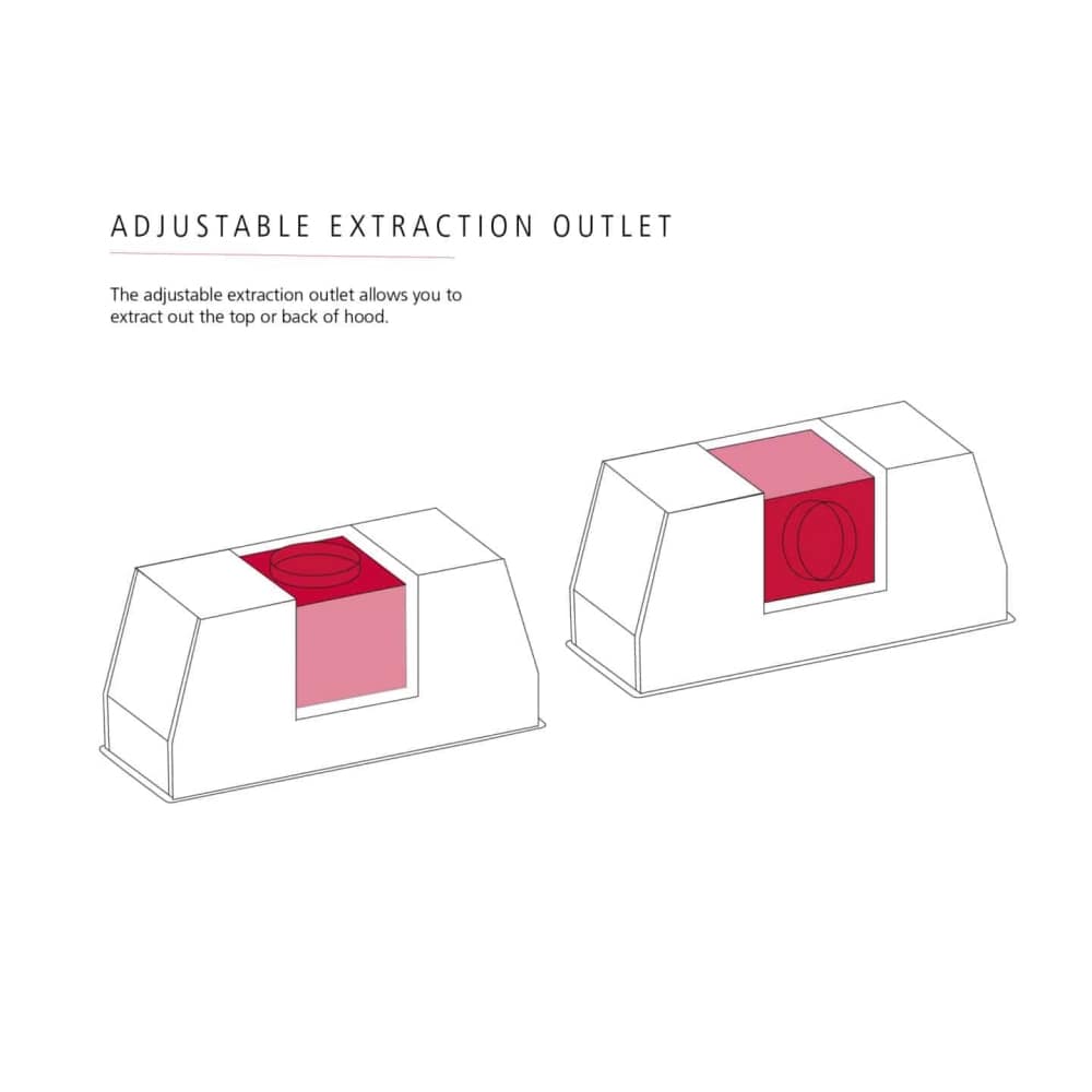 This superb canopy hood is designed to be installed in a wall unit, canopy or chimney breast, for effective but discreet design. With 4 speed settings and illuminated touch controls, it’s easy to choose what you need, and with an extraction rate of up to 770m³ per hour, it will make short work of removing the most lingering of odours. This model can be installed using external ducting or a recirculation kit for flexible fitting options.