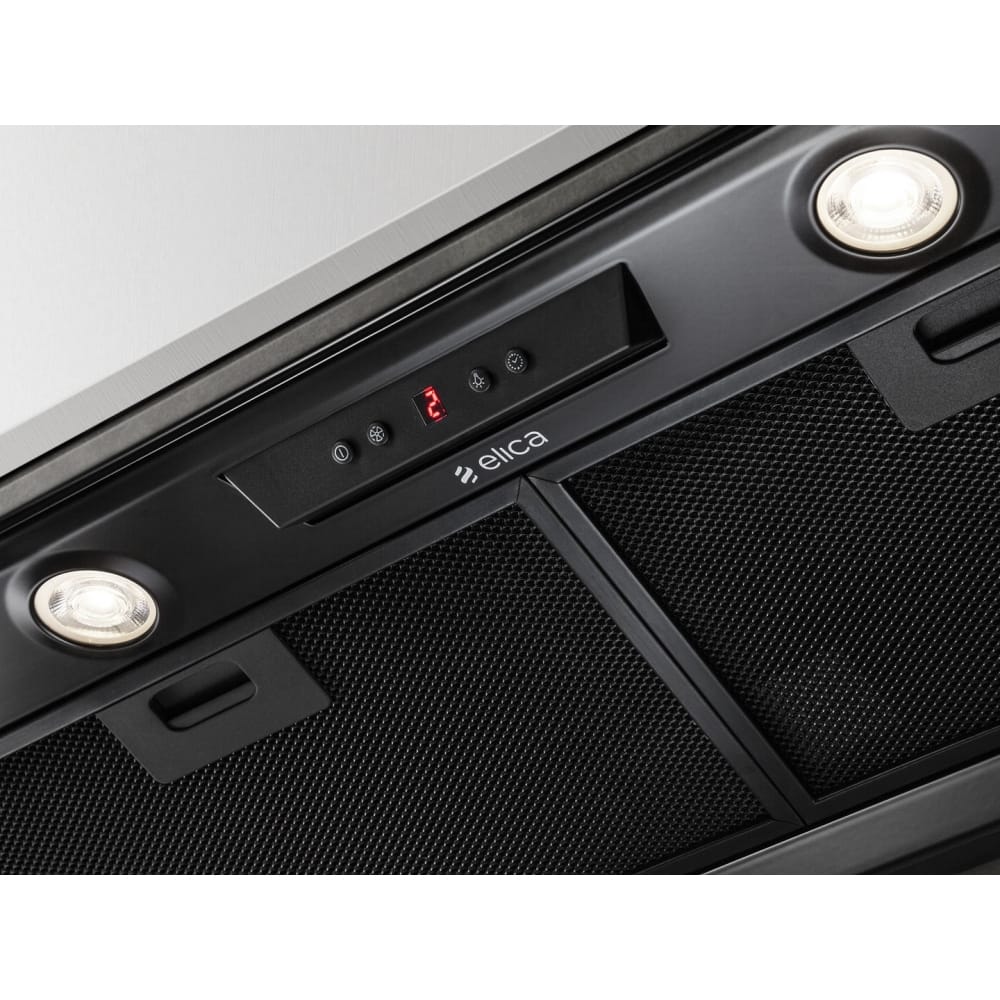 This built in 80cm canopy hood from Elica is finished in black and has an extraction rate of 560m³ per hour. This unit is designed to be built into a chimney breast or wall unit, alternatively it can be built into a false canopy which matches your kitchen design.