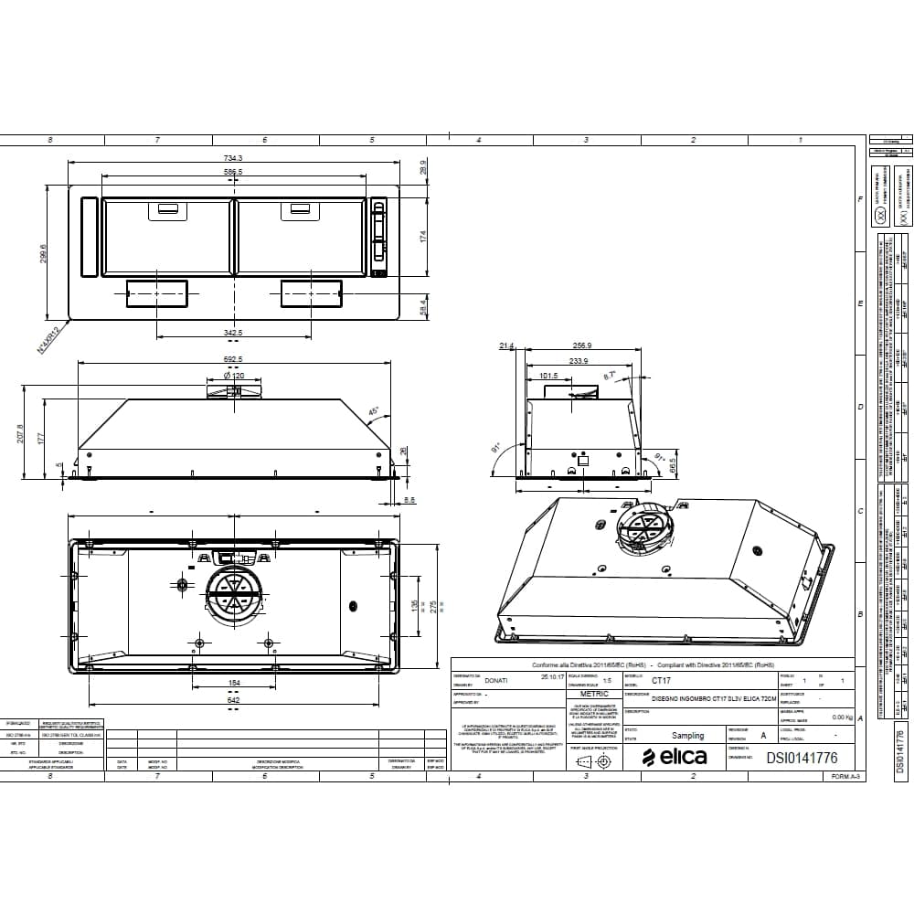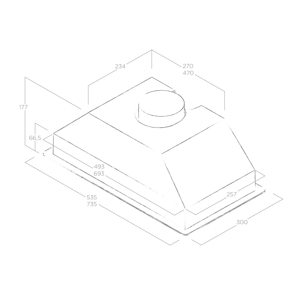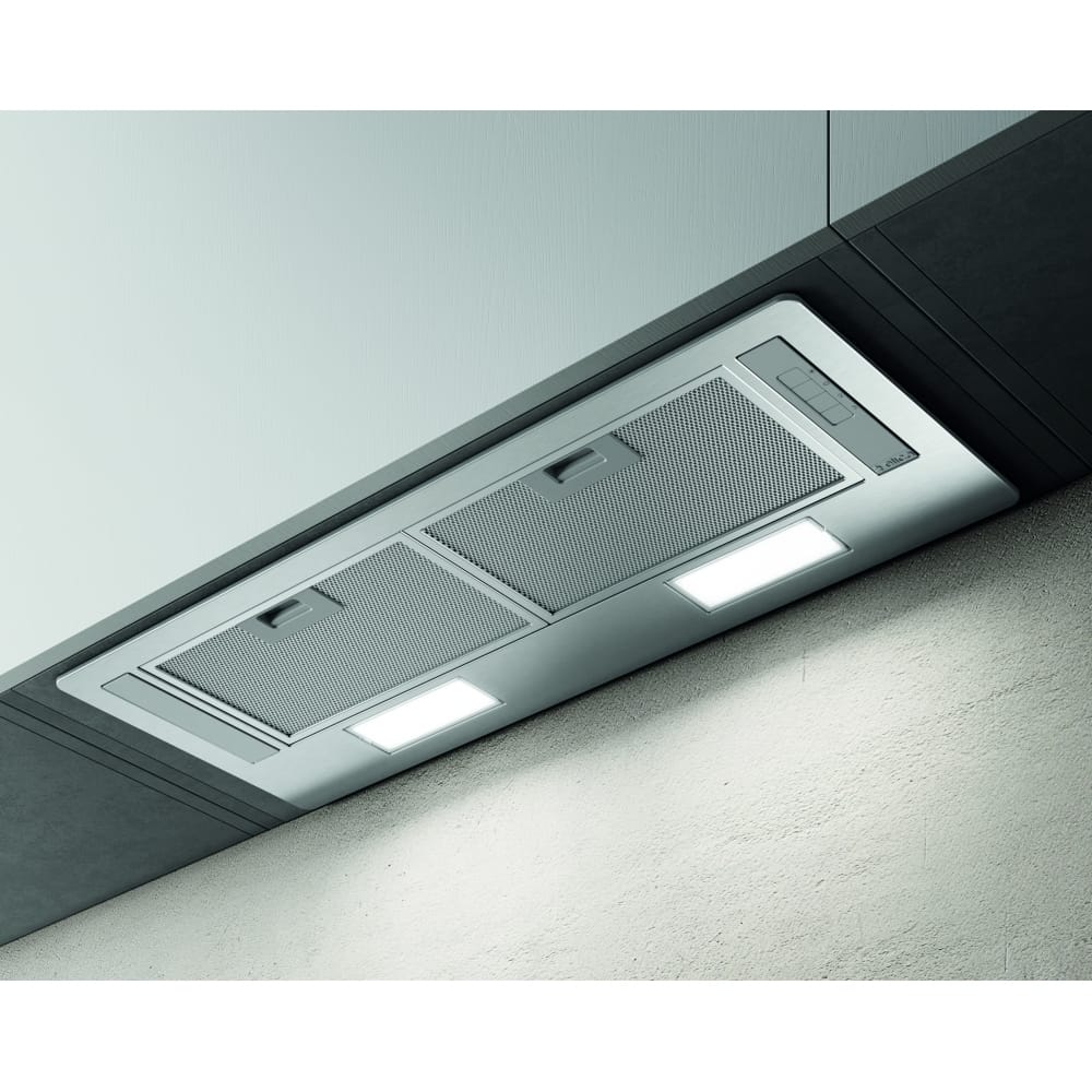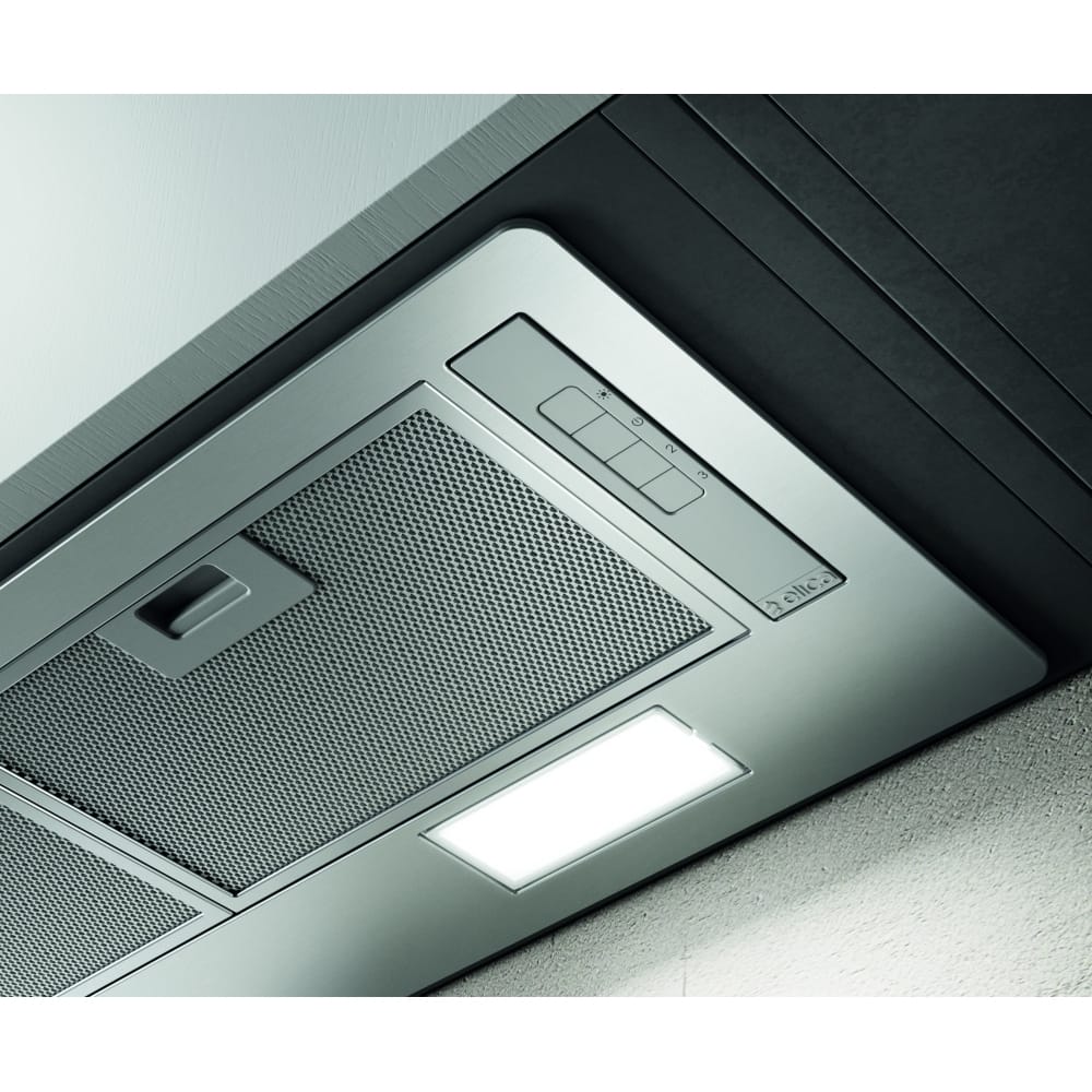This built in canopy hood from Elica is 74cm wide, finished in stainless steel and has an extraction rate of 320m³ per hour. This unit is designed to be built into a chimney breast or wall unit, alternatively it can be built into a false canopy which matches your kitchen design.