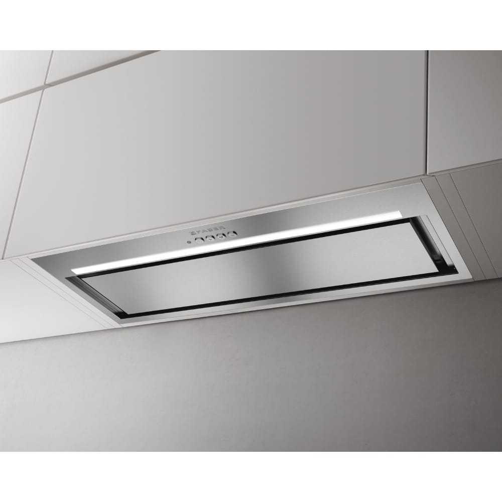 This built-in Inca Lux 3.0 cooker hood from Faber has a sleek stainless steel finish, LED lighting, and perimeter extraction technology. It can be installed into cabinets above the hob or into a chimney breast.