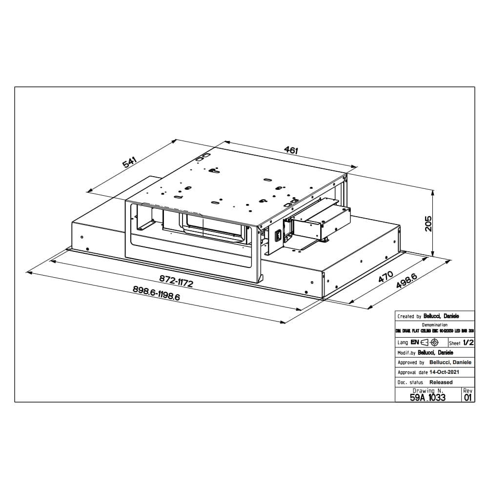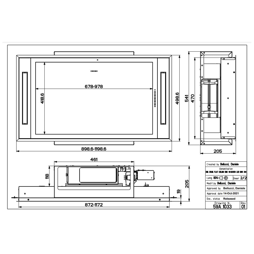 Looking for something a little less intrusive? The 120cm Faber Heaven SLIM ceiling hood boasts a maximum extraction rate of 510m³ per hour and an impressive 72dB maximum noise level. At 120cm wide it’s ideal for sitting above a large built in hob or above an island unit. It features a reduced height rotatable motor to aid installation within confined ceiling spaces.