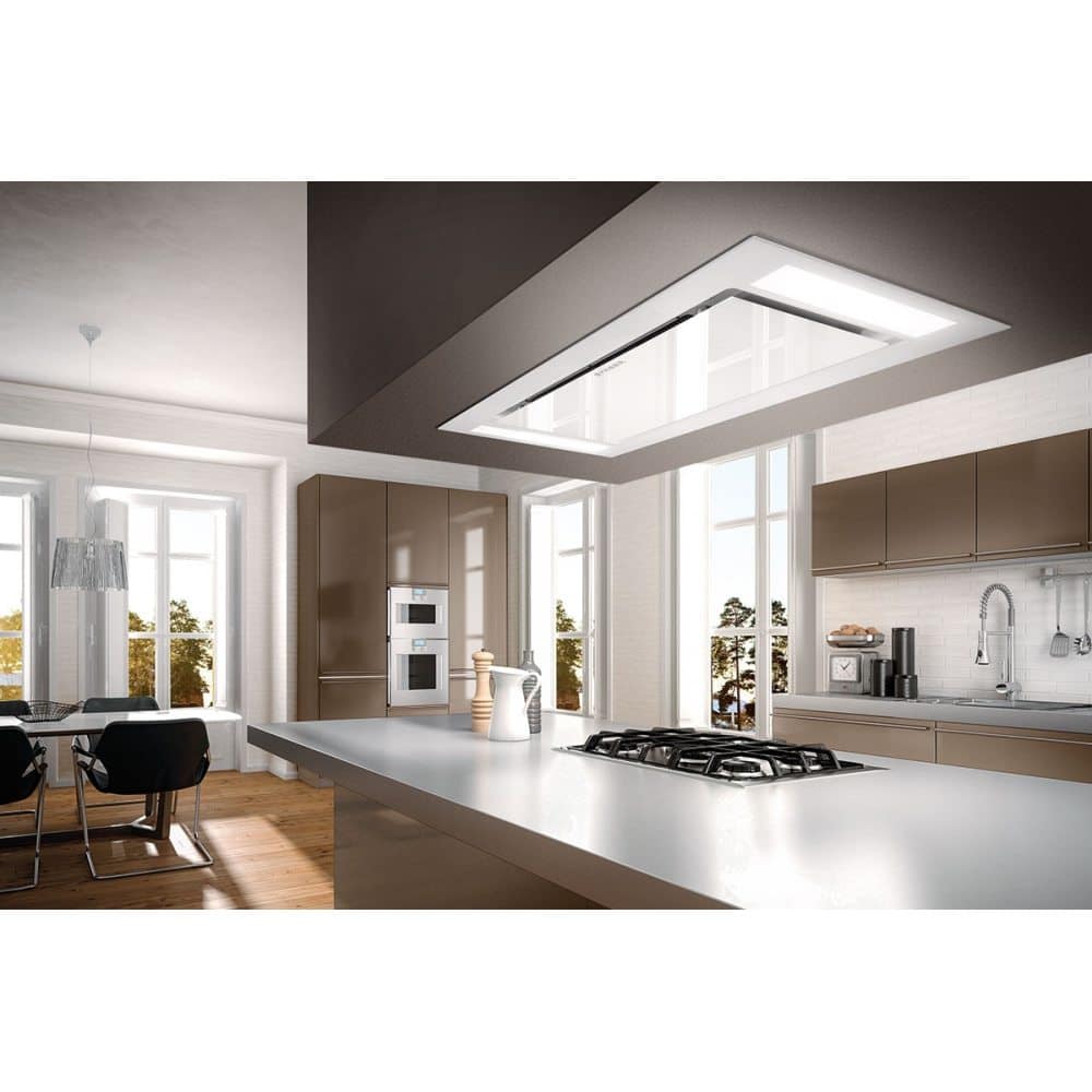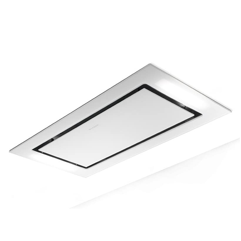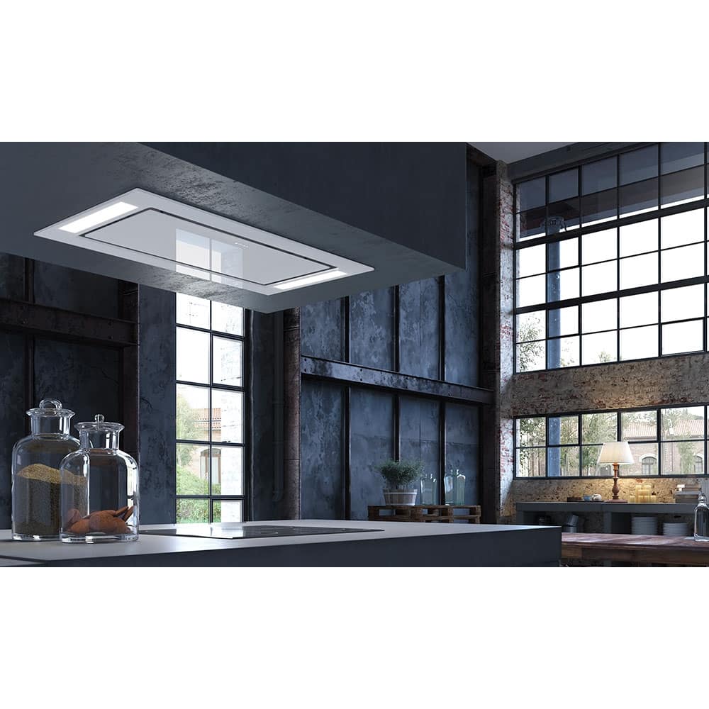 Looking for something a little less intrusive? The 120cm Faber Heaven Glass ceiling hood boasts a maximum extraction rate of 700m³ per hour and an impressive 72dB maximum noise level. At 120cm wide it’s ideal for sitting above a large built in hob or above an island unit. If you’re really tight for space you can remove the motor and run it inline up to 5m away with the optional Remote Blower Kit.