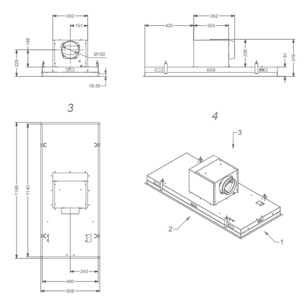 Ducting outlet diameter: 150mm