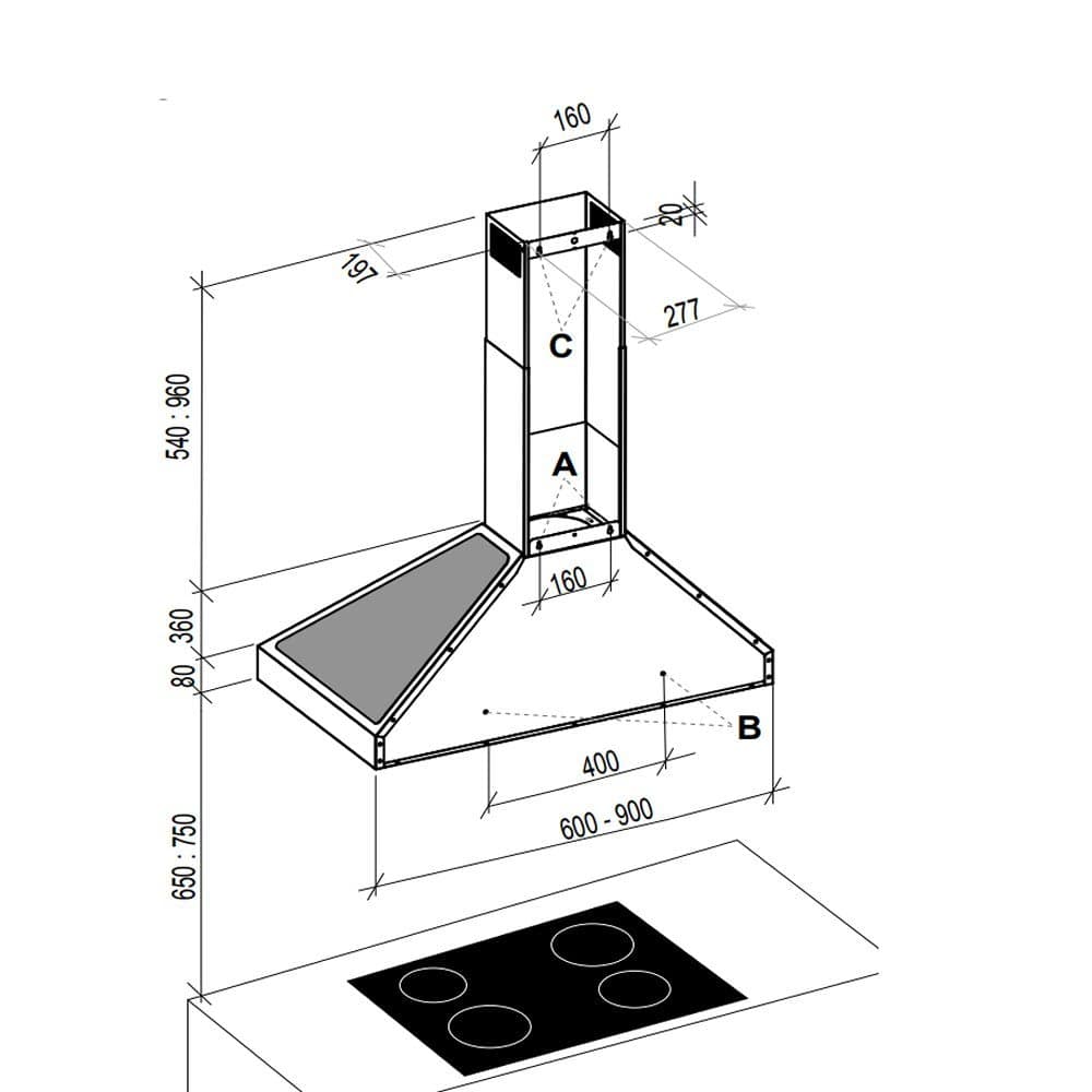This superb chimney style cooker hood from Bertazzoni is 60cm wide and boasts an 800m³ per hour extraction rate. This unit is designed to be ducted through an external wall but can also be operated in recirculation mode with the use of optional charcoal filters. Finished in stainless steel it will create a real focal point in your kitchen.