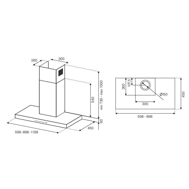 This superb Professional Series chimney style cooker hood from Bertazzoni is 120cm wide and boasts a 750m³ per hour extraction rate. It is designed to be ducted through an external wall but can also be operated in recirculation mode with the use of optional charcoal filters. Finished in stainless steel it will create a real focal point in your kitchen.