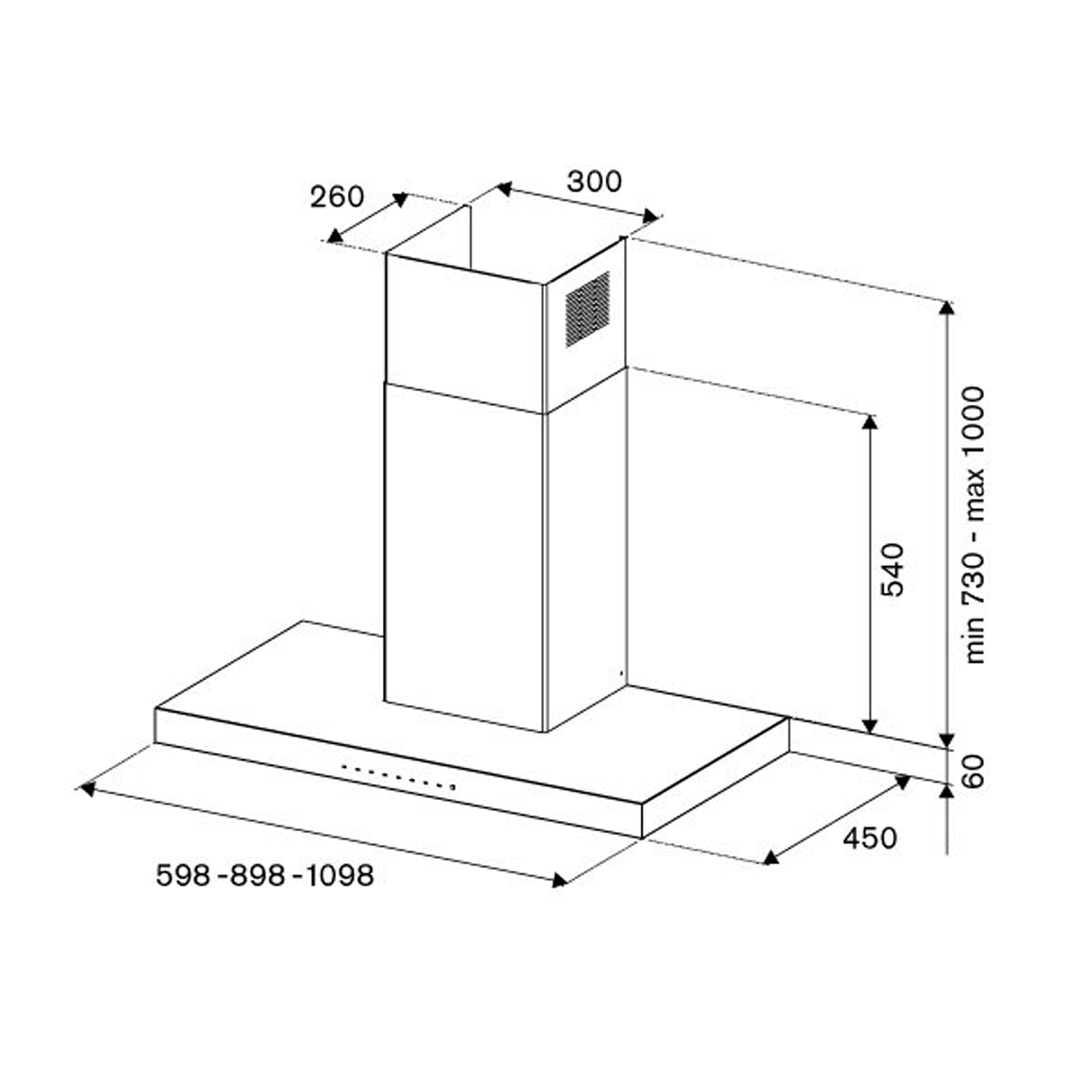 This superb Master Series chimney style cooker hood from Bertazzoni is 90cm wide and boasts a 710m³ per hour extraction rate. This unit is designed to be ducted through an external wall but can also be operated in recirculation mode with the use of optional charcoal filters. Finished in black it will create a real focal point in your kitchen.