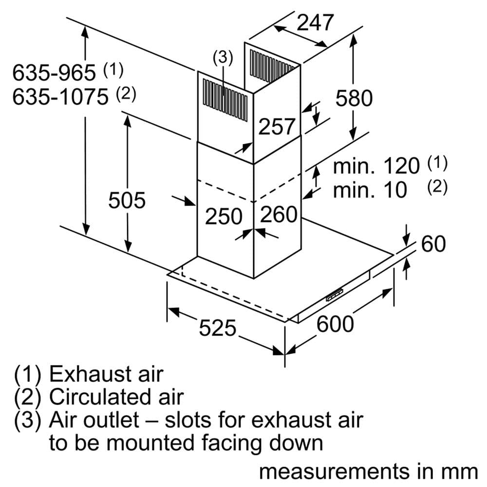 Dimensions (extraction): h635-965 x w600 x d525mm