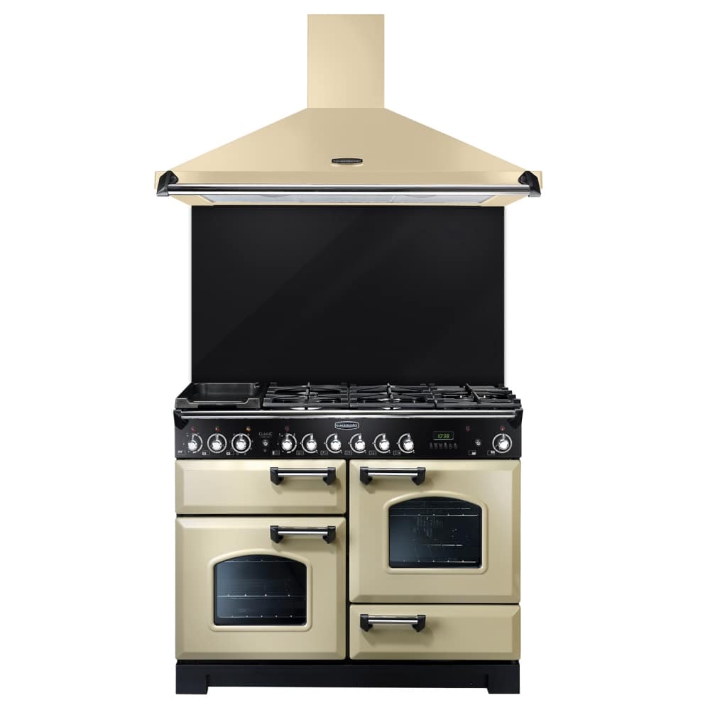 Rangemaster CLAHDC110CR/C 110cm Classic Chimney Hood With Chrome Rail – CREAM