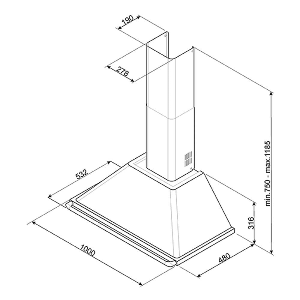 Smeg KT100BLE 100cm Victoria Chimney Hood With Rail – BLACK