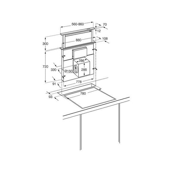 Dimensions (on worktop): w880 x d108mm