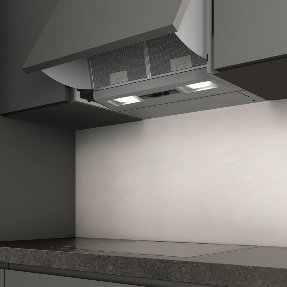 Designed to sit seamlessly between your cupboards, this 60cm integrated cooker hood from Neff will be your secret weapon in the kitchen. It has an extraction rate of 350m³ per hour, making it seriously powerful for a hood of its size. It will remove smoke and bad odours in a flash! With its stainless steel exterior and solid design, this hood is a fantastic addition to any modern kitchen.