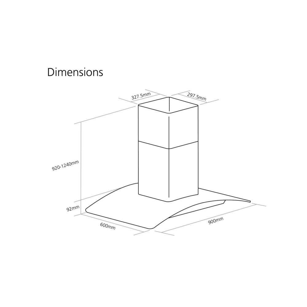 Caple CGI921 90cm Curved Glass Island Hood – STAINLESS STEEL