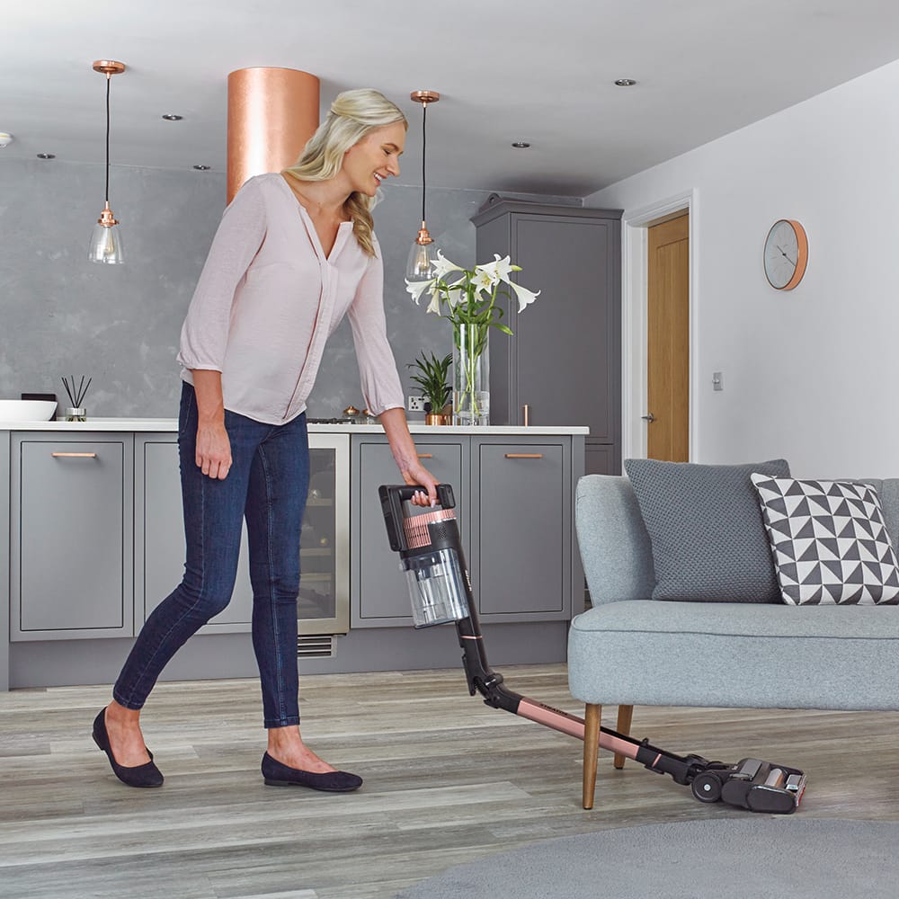 Vacuum your home in style with this beautiful rose gold cordless stick vacuum cleaner by Shark! Clean without restrictions thanks to this vacuum’s cordless design and run time of up to 60 minutes. For extra flexibility, the battery is removable, allowing you to charge it wherever you please! The IZ400UK’s unique floorhead features an Anti Hair Wrap and DuoClean brush, picking up hair and dust across carpet and hard floors without a tangle of hair forming. For easy vacuum maintenance, this brush combination is essential. Do you ever feel like your home could be cleaner? The IZ400UK makes sure no stone goes unturned. Clean Sense IQ automatically adjusts suction power depending on how much dirt it senses, cleaning up to 50% more effectively. LED lights in the floorhead illuminate the way, highlighting messy spots and patches you may have missed. This vacuum’s stick design features Flexology, allowing you to clean under sofas and other hard to reach spots while an anti-odour cartridge system in the floorhead keeps your home smelling fresh. Finishes with intuitive controls, clean high and low with this Shark vacuum cleaner.