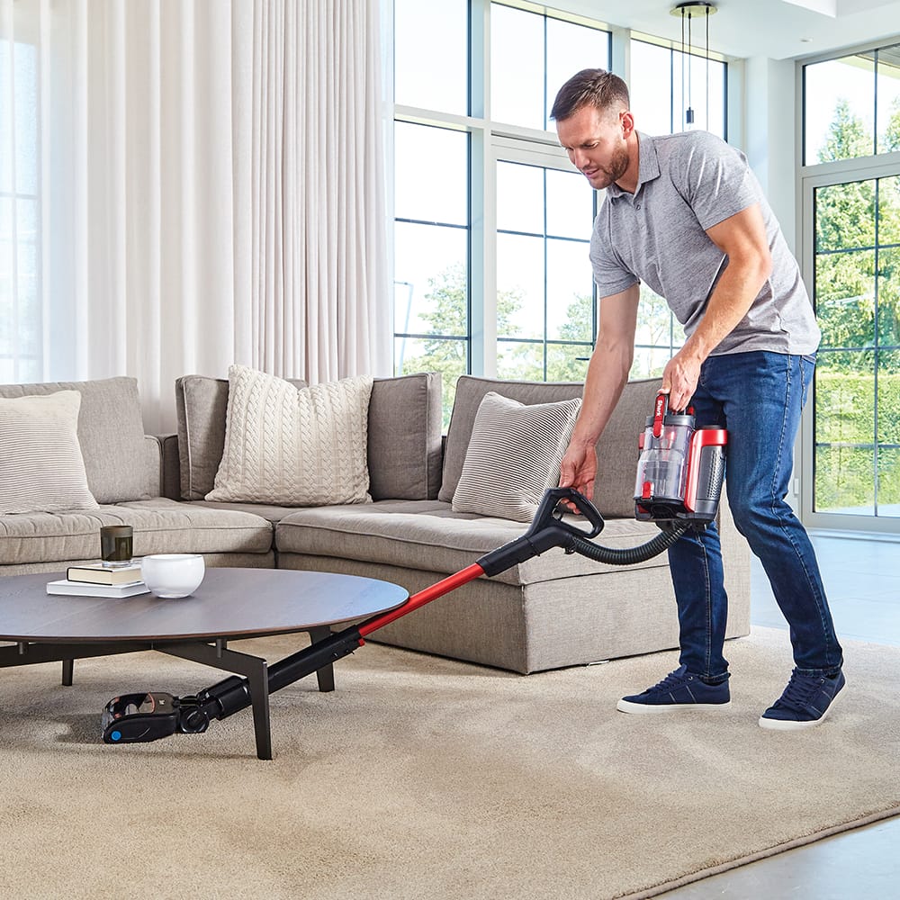 This Shark cordless vacuum cleaner provides up to 60 minutes run time. The battery can be recharged anywhere so you can get back to cleaning wherever you are. Using Powered Lift Away technology you can transform the ICZ300UK into a lightweight handheld model. This is especially handy for cleaning the stairs and hard to reach places in your car. Flexible silicone fins are engineered to stop hair from getting tangled around the brush roll. Ideal if you have pets! The DuoClean floorhead uses two motorised brush rolls to pick up even more dust and dirt than one standard bristle brush roll. This cordless vacuum cleaner works hard on all floor types, providing a deep clean on thick carpets as well as hard flooring. Finished in red, this cordless upright vacuum cleaner features an LED touch screen for easy control. Make vacuuming less of a chore with Shark!