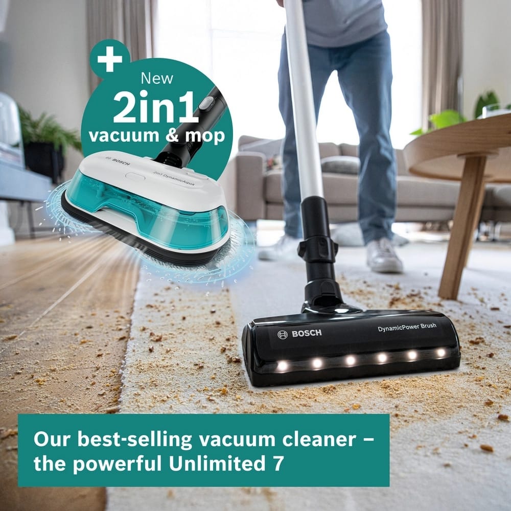 Bosch BCS71HYGGB Cordless Aqua Vacuum Cleaner With Mop – WHITE