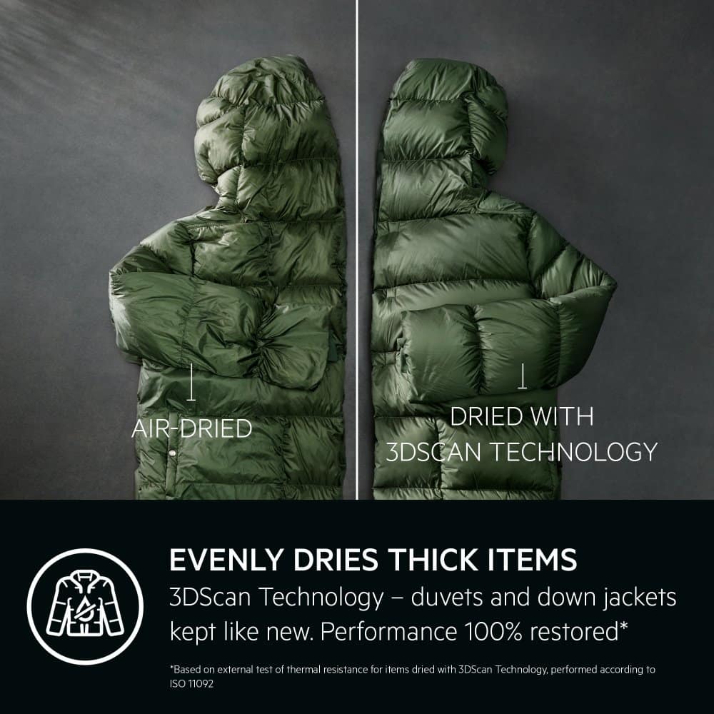 Drying programmes: cottons, synthetics, mixed, wool, outdoor, hygiene, down jackets, delicates, eco, bed linen XL, 3kg quick dry