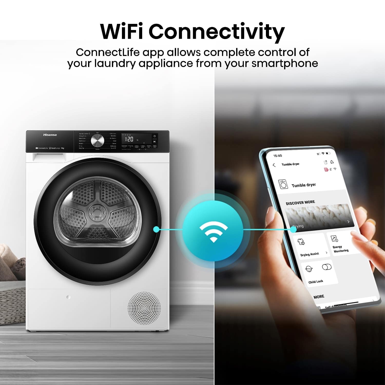 This excellent heat pump condenser dryer from Hisense has an impressive 8kg drying capacity and an A+++ energy efficiency rating. This model is perfect for a busy family home as it features multiple drying programmes, allowing you more control over your laundry time! Hisense will help you get your laundry done quicker with the sensordry function, which automatically stops drying when there’s no moisture detected in the drum.