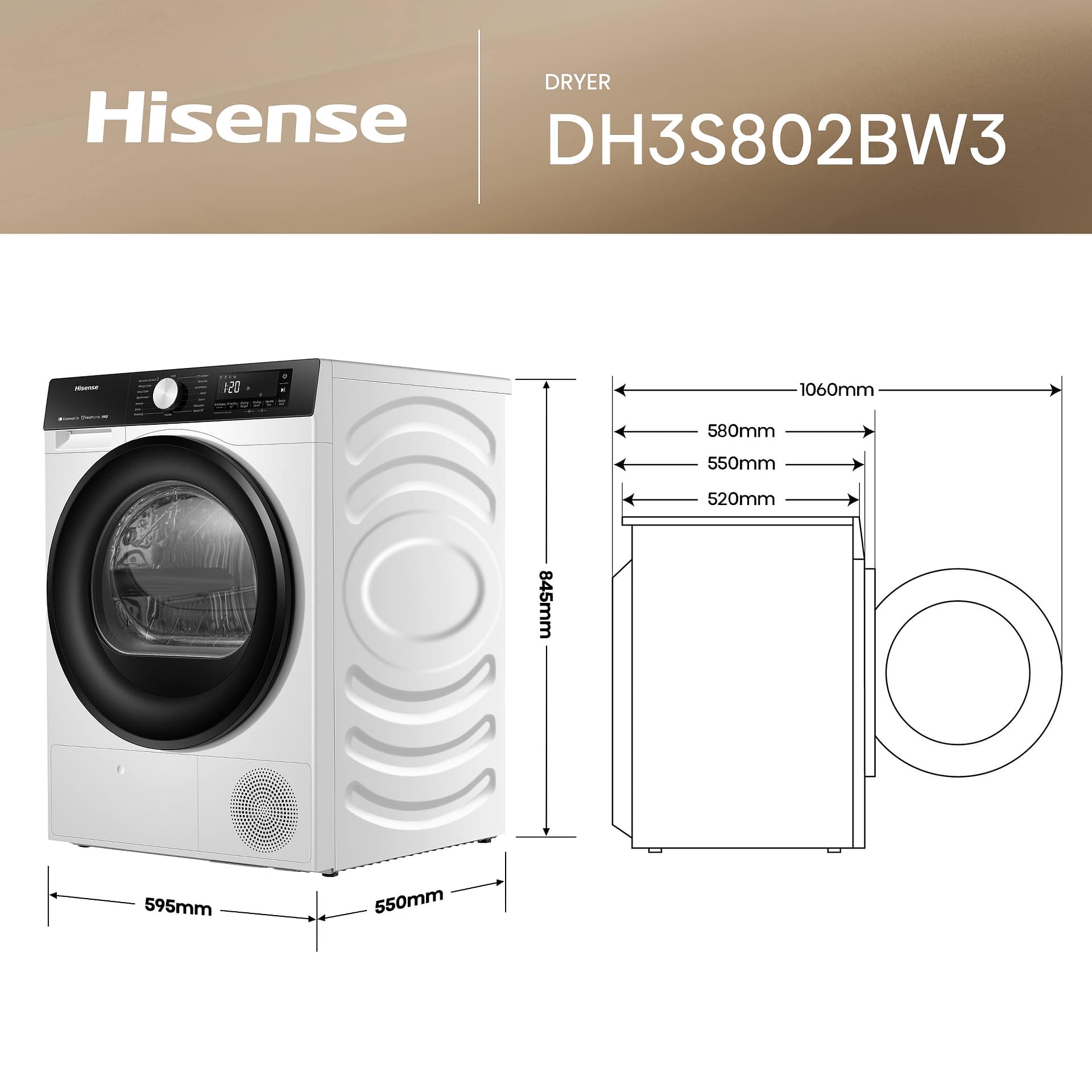 Hisense DH3S802BW3 8kg 3S Series Heat Pump Dryer – WHITE