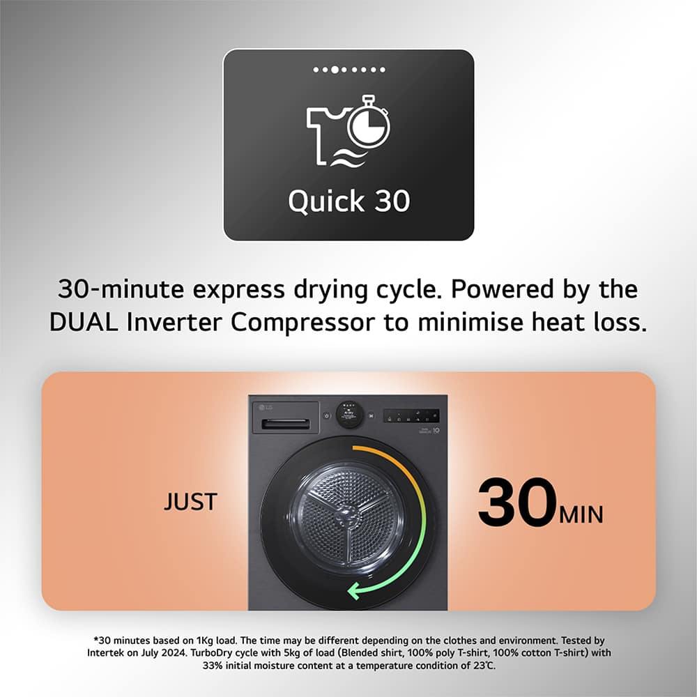 LG RHX7009TWB 9kg TurboDry AIDry Heat Pump Condenser Dryer – WHITE
