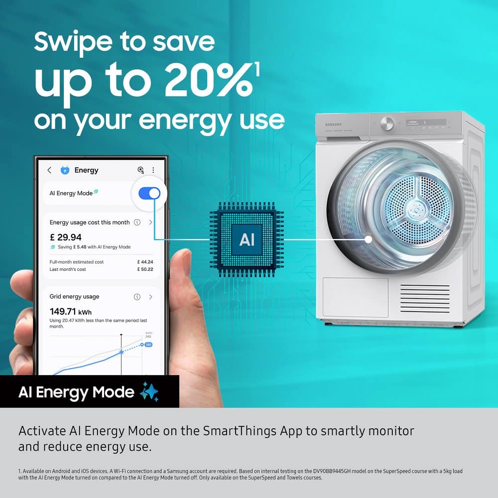 Samsung DV90F09F4SU1 9kg Series 9 Heat Pump Condenser Dryer – SILVER