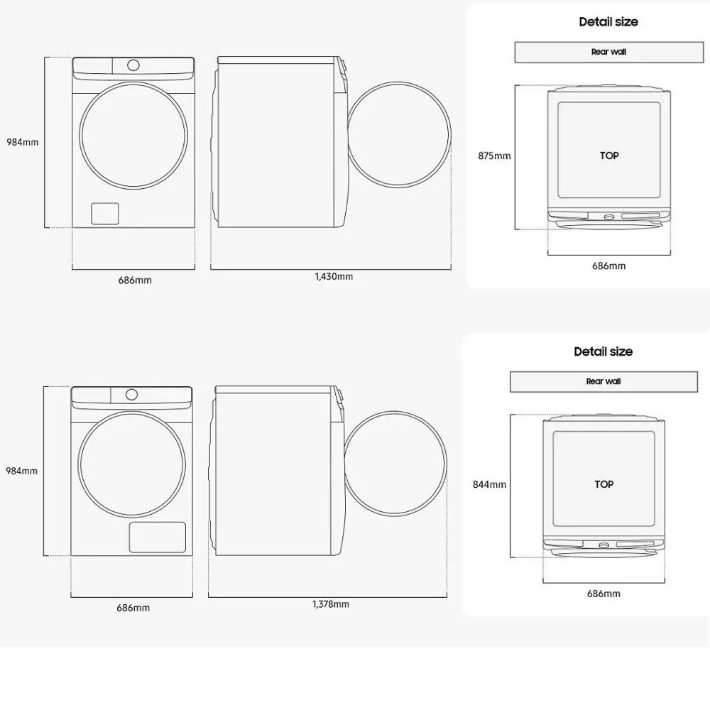 Upgrade your laundry routine with this fantastic washing machine and tumble dryer pack, powered by Samsung. The 20kg washing machine has a maximum spin speed of 1000rpm and uses EcoBubble technology to reduce energy consumption while keeping your laundry as fresh as possible. Incorporate the 30-minute Bubble Soak setting into your routine to lift even the harshest stains, leaving your garments looking as good as new! The 16kg heat pump tumble dryer reheats air in the drum instead of venting it in and out each time. This form of drying is gentle on even the most delicate fabrics and uses less energy, really helping the environment and your bank account! Finished in black, this washing machine and tumble dryer set is the perfect combination to keep your clothes consistently clean and long-lasting. Please note that these appliances won’t fit under your worktop.